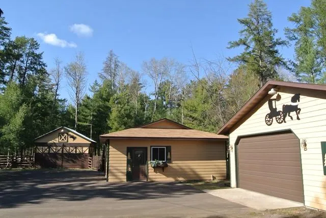 Rare opportunity in the Manitowish Waters / Boulder Junction area. Attention Nearby Lakefront Homeowners: General Business zoned land, ideal equestrian center or hobby farm, close to your lake home! Multiple living areas for an onsite ranch hand. Hobby farm is fully equipped with 1 Acre fenced in equestrian area; 10x20 feeding stable; 24x26 work barn with horse stall, tack room & feeding room, 30x30 garage with 10' ceilings, 10x20 stable with loft; 12x16 bunk/warming house. Cozy and well maintained 1,000+/- sq ft home features a spacious 15x16 kitchen/dining area, knotty pine interior with log accents and living room with wood & gas stoves. Road frontage on two town roads, blacktop circle driveway, State Forest Lands on both sides of the road. Hi-Speed internet. Location is everything in real estate and you are truly located in a beautiful area, just outside of the desirable quaint town of Manitowish Waters and surrounding by the renowned 10 lake chain (Public boat landings nearby).