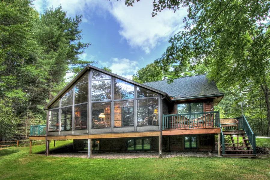 There is so much to love about this quality built home located on 110 of sand frontage on Johnson Lake. Open concept home, spacious rooms & cedar cathedral ceiling have been meticulously maintained. Features floor to ceiling river rock fireplace in the living room & provides a CHEFS DREAM KITCHEN with sculpted granite counter tops, Jenn-Air appliances, stunning cherry custom made cabinets & hickory wood floors. A 28 x 10 sunroom overlooking the professionally landscaped yard. Main level master bedroom offers walk in closet & beautiful gyro ceiling fan. Another bedroom & laundry found on the main level. Double Kohler designer sinks in the main bathroom along with the garden tub & separate shower with spray jets were designed by a master plumber. Lower level is finished & offers a guest room, bath & lots of storage. The attached 3 car garage & additional 3 car detached garage with guest accommodations. A perfect home for entertaining or enjoying the tranquil surroundings!
