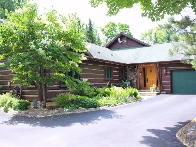 Exclusive, private lake and community of peace, tranquility and nature! Outstanding craftsmanship creates a perfect blend of Northwood's and elegance. Impressive entry foyer, great room, stunning floor to ceiling fieldstone FP, beamed soaring ceilings. Chef's choice kitchen w/the finest appliances, custom Cherry cabinetry and built-ins, granite surfaces. Lakeside 3-season sunroom w/vaulted ceiling is ideal for morning coffee, breakfast, evening social hour. Exquisite master suite has fieldstone gas FP, French doors, large bath w/jetted tub, tile shower, granite surfaced dbl vanity. Guest BR, large bathroom and study with Murphy Bed to use as 3rd BR. Main floor laundry, mud room, att. garage. 2+ car det. garage, workshop, paved drive, landscaping make this a move-in property. Enjoy boutique shopping, fine dining, walking, biking trails and groomed snowmobile and ski trails throughout the ...