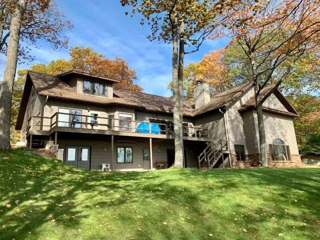Beautifully constructed home on the north shore of Big St Germain Lake encompasses 6 acres, 157' of sandy water frontage and a giant garage that can store just about everything. This home boasts 4,600ft including 4 bedrooms, 4 baths, two living areas, a large kitchen, bar, hot tub and lake views from nearly every room in the house. The home has two main levels and has two natural gas furnaces, as well as a wood stove and a woodburning fireplace. The lower level is a very grand space and great for parties. This space has 20'+ ceilings, a full bar, rec area, hot tub, bedroom and shop. This level also walks out to a level yard that leads to a sandy waterfront. Across the street is the garage. It's a 40' x 60' concrete block outbuilding with three 10' x 12' doors. It has its own well, septic, 1/2 bath and includes 1 insulated stall with a gas heater, as well as a wood stove. Both driveways a...