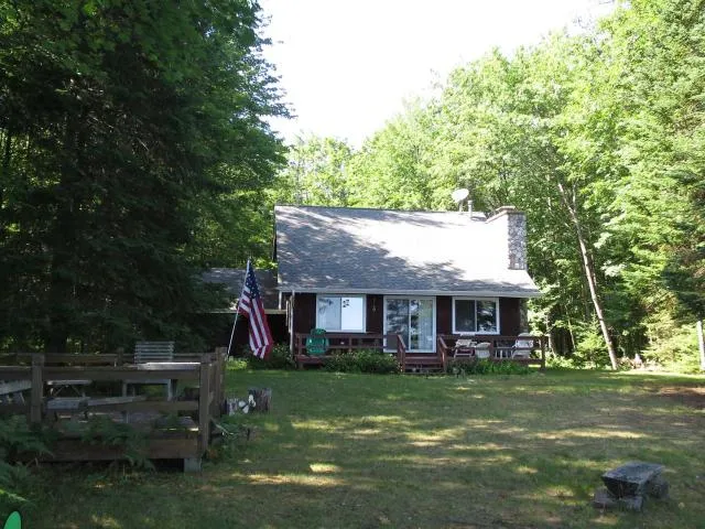 LOOKING FOR BIG WATER AND LEVEL FRONTAGE - You'll find it here! The lot has 200 feet of sand & weed frontage. The current home is built on one side of the lot with room for another. Use this home for now and build your dream home later or have plenty of room for expansion. The living room has a cathedral ceiling, split stone fireplace & beautiful views of the lake & surrounding woods. The kitchen is open to the living room & there is a bedroom & a bath on the main level. The upper level has two bedrooms & a full bath. Relaxation is yours on the deck that runs the full width of the home, the deck on the side of the lot closer to the water or enjoy a campfire in the firepit at the shore. A two car garage is attached to the home for convenience. Swim, fish or boat the two lake chain! Home comes completely furnished including pontoon boat! Move in and enjoy!