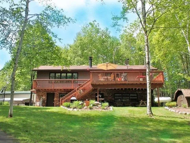 150' of straight-line frntg and 250' meandering frntg on a peninsula picnic point plus your private boat landing. South Two Lake is a no public access, full rec lake with 214 surface acres, depths to 69 ft. Pristine, crystal clear water ideal for swimming, paddling, kayaking and fishing! 3 BR, 2 1 /2BA home, living rm with Earth Stove FP, tile shower, granite surfaced vanity, spacious kitchen w/stainless app., plenty of Alder wood custom cabinets. Main living areas all face lake. Walk-out LL. Beautifully landscaped, newer vinyl ext., low maint. Spacious lakeside deck offers great outdoor entertaining and relaxing. 2 car gar., outdoor wood-burner, auto generator, garden shed, plus 20x40 pole building, approx.. 5 acres! Ideal Lake Tomahawk location between Minocqua and Rhinelander, on a quiet lake in quiet area surrounded by State Forest property and endless recreation. Don't miss your cha...