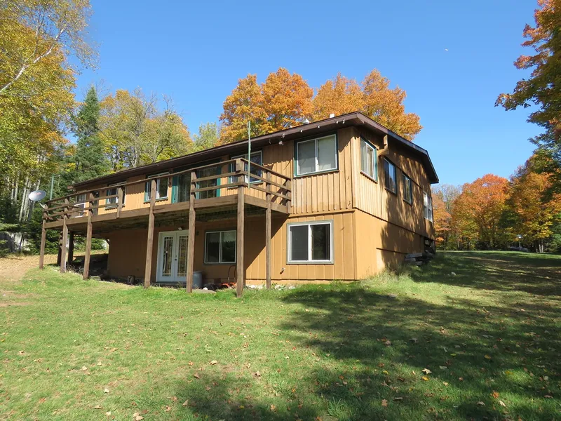 Not often found in Western Vilas County -- 230 feet of lake frontage on 21 acres, but this 2BR 2BA Rainbow Lake home offers that, plus a 30x52 pole building that provides useful shop and storage space. The front windows of the home provide a gorgeous west-facing view down a gentle grassy slope to the cool blue waters of Rainbow Lake. The open floor plan interior of the home exudes a rustic charm due to the extensive use of rough cedar. A stone-faced gas FP dominates the LR., and there's a Large spacious Kitchen.. Built-ins and storage space everywhere -- check out the multi layered built-in pantry. The LL is mostly unfinished, has a bathroom, a walkout, and a wood burning stove. Several outbuildings, including the large pole building, which is insulated, has gas heaters of unknown condition, and lies along an old RR grade. Plenty of open space for a garden, if you are so inclined. And do...