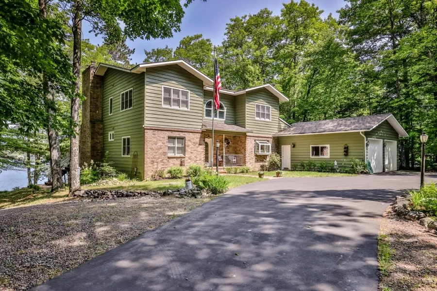 PLUMMER LAKE EXECUTIVE HOME. Quality, custom built home with 4 BR, 4 BA and room for the whole gang! Open foyer, living room w/gas fireplace, dining with wet bar, ideal space for entertaining. Expand your living space into the year ‘round, lakeside sunroom. Large kitchen with SubZero fridge and Amish crafted cabinetry. Convenient main floor laundry, BR and bath. Upper level has spacious primary suite w/whirlpool tub, shower, walk-in closet and 2 addt’l BR and a BA. Finished walk-out LL has expansive family room with fireplace, and 1/2 bath, could be a great media/theater room, use your imagination with this level. Enjoy morning coffee on the enclosed porch and evening sunsets on the deck. 2-acre lot offers lots of privacy. Nearly 200’ of sand frontage. Attached 2-car gar. and 30 x 40 steel storage building complete this offer. Plummer Lake is just a few minutes west of Minocqua, a full r...