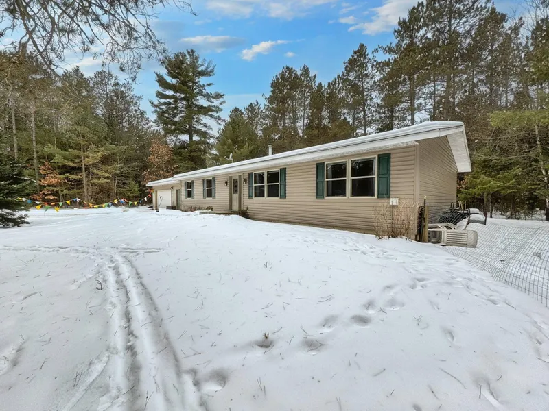 Nestled on 2.67 acres, this charming 3-bedroom, 2.5-bathroom ranch home is perfect for those who crave the serenity of rural living. As you step inside, you'll be greeted by a cozy living room w/ a gas fireplace, & vaulted ceiling, adjoining the dining room & kitchen, making it easy to entertain. Retreat to the master bedroom, featuring a master closet & en-suite bathroom with double sinks, whirlpool tub & water closet w/ shower. The full-size basement has an additional living/rec. space to enjoy a rock-climbing wall, bonus room, half bath & shop room that connects to the attached 2+ car garage for added convenience. With state land surrounding you & the river just a stone’s throw away, you’ll love the easy access to trails right from your backyard. Blueberry, raspberry and grape bushes waiting for you to enjoy in the warmer months. Direct access to snowmobile, biking trails ATV/UTV trai...