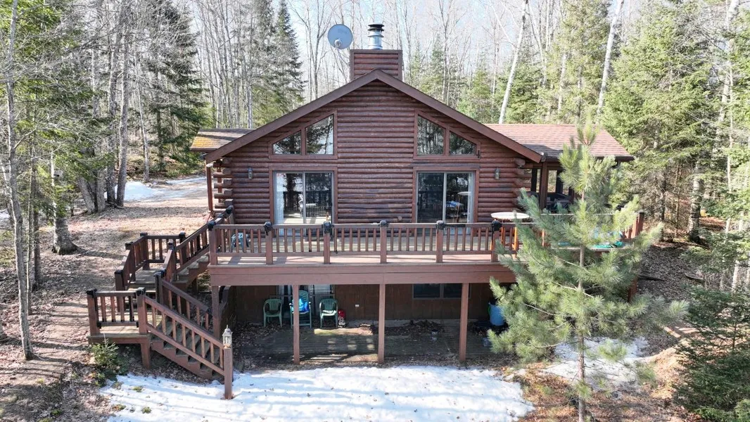 Beautiful furnished Northwoods log home located on 100.21' of prime lakefront on Echo Lake of Sugar Camp Chain of 5 lakes. The shoreline is mostly sand, ideal for all water activity without the congestion of larger chains of lakes. The home has a log exterior, knotty pine interior, cathedral ceiling, and wood burning fireplace. A wall of windows with sliding glass doors leads to a large beautiful outdoor deck providing breathtaking lake views. The main level of home has 2 bedrooms, full bath, living room, kitchen with access to a screen porch. Finished basement with bonus room, the size of a bedroom, with large closet/storage space, full bath, wet bar and recreation room leading to easy lake access. Updates include newer drilled well, water treatment system, fixtures in both baths, refrigerator, stove, sink, garbage disposal, natural gas furnace and hot water heater. Seller is listing se...