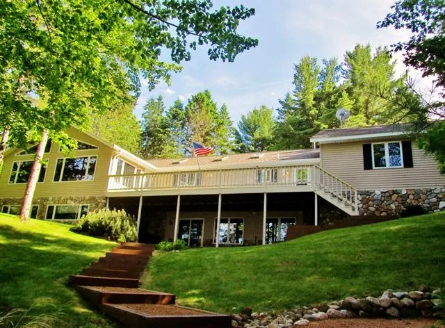 This very well maintained 4 bedrms, 3 bath home sits proudly on a 1.33 acre lot, with 275' sand frontage on a 966 acre 2-lake chain! The large gourmet kitchen has oak cabinetry & a center island and is truly a cooks dream. Open concept kitchen, living and dining room has vaulted ceiling, skylights and stunning wood burning fireplace. First floor master bedroom has access to sun room, walk in closet, private bath with shower, garden tub, and large vanity. Two additional bedrms, first floor laundry and amazing four season room complete the main floor. Walk out lower level with Lakeview is completely finished with huge rec room, workroom, additional bedroom, full bath, wet bar makes it perfect for entertaining. Additional features include; 3 car attached garage, pier, in ground sprinkler system, central air conditioning, 14'x35' lake side deck, beautifully landscaped, blacktop driveway, fire pit area and so much more. Only 6 miles west of Minocqua commerce, health care & schools.