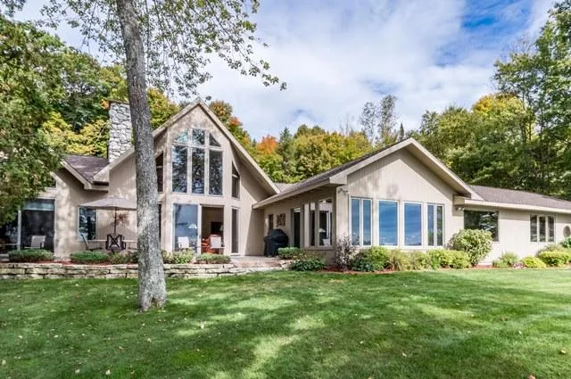 This stately Fence Lake residence has been completely remodeled in the last 5 yrs. Main floor living w/unobstructed Fence Lake views & 200' of south facing sand frontage on 6+ level & wooded acres. Grand entry leads to wet bar w/granite counters & wine cooler, & great rm. w/soaring wood burning FP & wall of glass w/walkout to lakeside paver stone patio. Spacious master suite w/separate patio access, walk-in closet, bth w/dbl vanity, soaking tub & tile shower. New chefs kitchen w/Henson custom cabinetry, granite counters, dbl. oven & SS appliances. Lg. dining rm. w/custom buffet leads to yr. round sunrm. & lakeside patio. New tile & maple floors throughout. An addit'l 2 lrg. bdrms, 2 full baths & laundry complete the main house. Inviting, newly finished guest quarters w/bth. above the insulated, heated overszd. garage. Sweeping paved circular drive, profess'l landscaping, irrig. system, n...