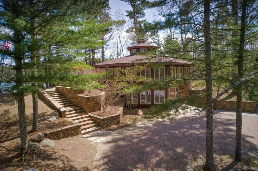 A BREATHTAKING PINE STUDDED 20.56 ACRES w/1019' +/- of SAND BOTTOM FRONTAGE ON MOON LAKE, provides the DRAMATIC SETTING for this AMAZING LAKEFRONT FAMILY COMPOUND. Located on a 2 lake chain near St Germain, this property boasts a Custom Architected Octagon 2 story main house, a 24'x26 dtch 2 car heated garage w/loft bunkhouse & full bath, a 24'x36' dtch 3 car heated garage w/loft bunkhouse & full bath, a dtch 16'x32' garage w/car port, & the coup de grace is a 40'x42' Airplane Hanger w/loft 1 bedroom apartment. The Hanger is perfect for your Seaplane or Ultra Light, or just a very large toy storage area. This rare & unique property has been a family estate for 40+ years & been painstakingly maintained. Some of the wonderful amenties include a long winding paver stone driveway, nature trails through the rolling wooded acres, a private launch for boats or seaplanes, crystal clear waters of Moon Lk, 2 stone fireplaces, a stunning vaulted great rm, & patio w/180 degree water views.