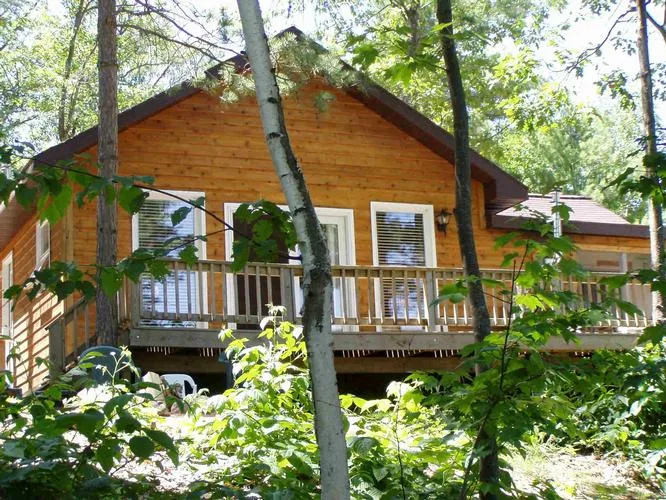 Great Room Designed, all knotty pine interior with Cathedral Ceiling, this remodeled, 2 Bedroom lakeside cottage will take your breath away! Enjoy the free standing gas stove in the Great Room for all of your family gatherings! French doors lead you to the spacious deck and a screened in porch to enjoy the amazing views of White Sand Lake. The furnishings are all included. This newer year around home is located on a quiet Bay on pristine White Sand Lake with 475 ft of sandy frontage, tucked away in the woods and only 15 minutes from Minocqua. Six other cabins are also for sale in this Condominium Resort Corporation. Common areas include, covered boat slips and piers, sand beach, walkways and stairs to the lake, playground, game room, parking areas, driving areas, storage areas and so much more. The cottage is in a rental program which provides for an attractive investment opportunity!