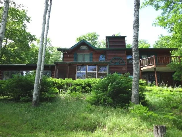 Let's get away from it all! Looking for a private Northwoods year around, stick built Lake Home surrounded by acres and acres of state owned forest? Here's a half-log home nestled in the woods that enjoys 207' of sand ftg on Roach Lake. This 2,800 sq ft home has spacious KT, open DR/LR w/ Vermont Castings wood stove and 3-season porch, all with gorgeous lake views. Antique doors & hardware connect the adjoining FR w/gas log stove and passive solar south facing windows to soak up the sun. Take the spiral stairs up to the 3 spacious upper level bedrooms, one with lakeside deck. There are hardwood floors, cedar T&G walls, wainscoting, bead-board in the bath, a mix of antique accents such as claw-foot tub and other features that beautifully enhance the Northwoods ambiance. Add in energy saving 6" walls, cedar log siding, chalet style exterior, small playhouse, two garages & insulated worksho...