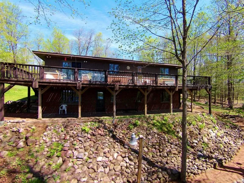 Immaculate home with walkout finished LL, situated on a wooded, landscaped lot with 200' of sand frontage and Southern views of beautiful Oxbow Lake! Via the blacktop drive, pull right in to the 3-car attached, heated garage with plenty of workshop space! You enter the mudroom from outside or the garage. There is a large living and dining room area with lake views, a wood burning fieldstone fireplace, and easy access to lakeside deck. The kitchen has all the modern conveniences you will need. Main level master bdrm & bath! The LL is finished with a comfortable & spacious family room w/ another fireplace, another bedroom, bath and more! Many updates have been done over the years from the furnace/water htr to the roof in 2014, pressure tank in 2015, updated bathrooms, flooring, ceiling fans throughout, and more! Walk to the lake, passing the pond with waterfall and sitting area! Enjoy swimming, boating, fishing, and let us not forget the dry boathouse that has heat and water to it!