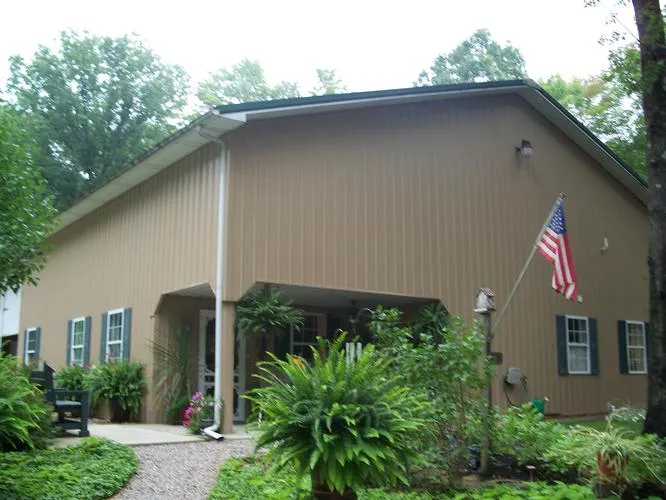 Beautifully maintained get-a-way, suitable for seasonable or full time occupancy. The picturesque setting among the forests of the Hocking Hills offers convenience to the fine dining establishments of the area and its many beautiful nature attractions. Many amenities are offered in the large post and truss structure which include a comfortable living area, complete with a great room, modern kitchen, office area, master bedroom with private bath, utility room, guest bath, carpeted floor covering, covered porch and private patio. The living area is heated with a down draft LP gas furnace. The included shop area has all available utilities with radiating heat, 16' ceiling, 12' x 14' overhead door, loft storage, office area and guest room. There is an adjoining covered parking area with 16' ceiling height. Electric is provided by underground service and the water is into a deep vein aq...
