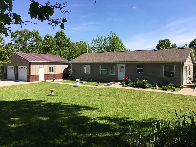 Late model manufactured home. This home is in great shape with the addition of replacement windows, laminate flooring, built in appliances in the eat in kitchen, plenty of cabinet space, large private bath off of the master bedroom, with step in shower and garden tub large walk in closet. One family bath with step in shower. All situated on beautifully landscaped lot with tremendous view. Heated two car garage for storage or hobby.