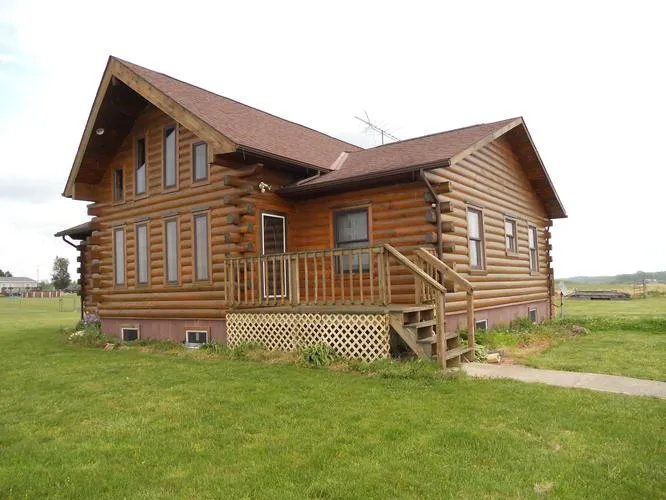 Rustic log home, beautiful kitchen with dining area, hardwood flooring, loft, full basement, total electric, public water.