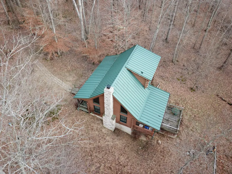 This darling secluded cabin is situated on nearly 25 acres of beautiful mature treed land & ravines. Could be a wonderful getaway, 2nd home or luxury hunting cabin. The original survey pins are marked and in place around perimeter. Several marked trails throughout the property. 2 bedrooms on the entry level with a full bath, jetted tub, brick hearth fireplace & large enclosed porch overlooking the ravine. The spacious loft style bedroom on the 2nd floor offers its own private bath. The 12 course lower level features a walk out door to the lower deck, full bath, working station and plenty of storage. Could be easily finished for additional living space. The grand 2 tier deck & large front porch are both perfect for relaxing or watching wildlife.