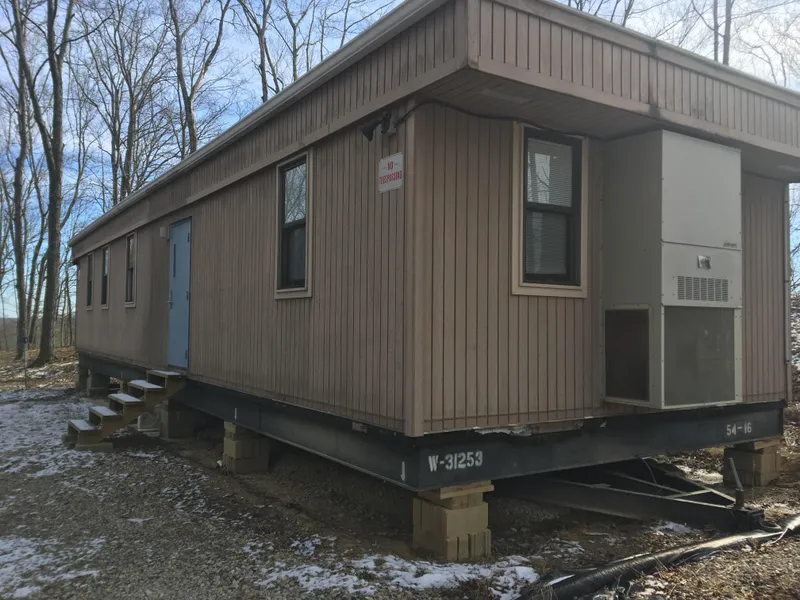 Modular job trailer converted to weekend retreat. Self contained electric heating/cooling unit. Sitting on 5 acres more/less and minutes away from Vinton Furnace Experimental Forest. Utilities on site, county water and electric.