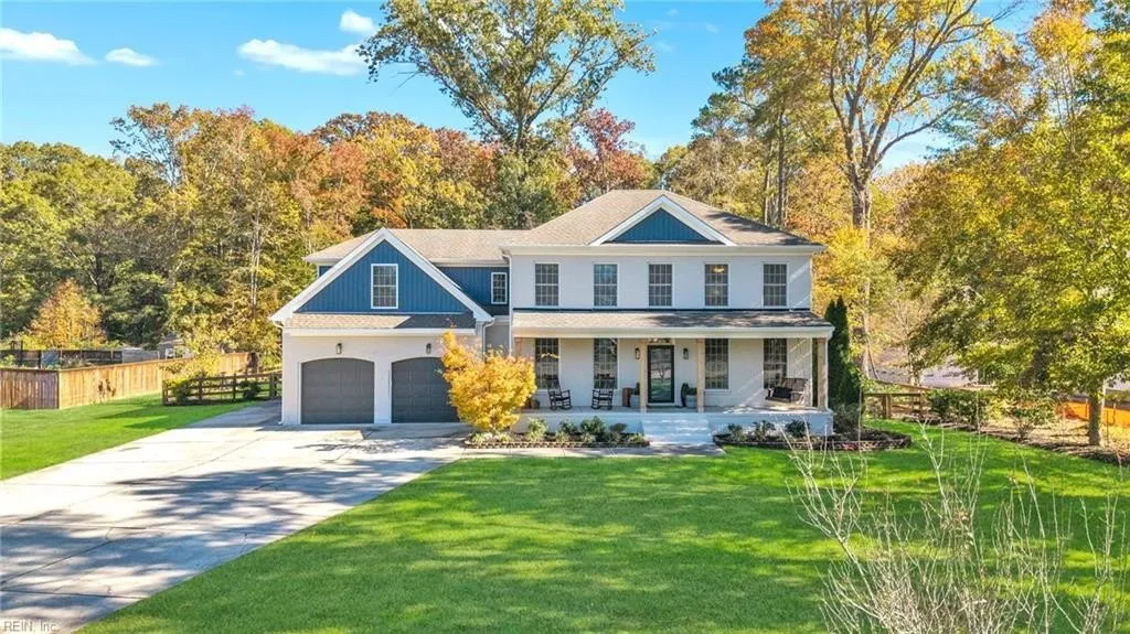 A rare opportunity to experience elevated living in this timeless farmhouse residence featuring 5-bedrooms and 3-bathrooms set on a spacious 1.3 acre homesite in southern Virginia Beach. This beautifully updated country estate offers the perfect blend of privacy, sophistication, and comfort. The chef's kitchen features custom cabinetry, coffee bar and pantry, professional level Kitchen Aid appliances, quartz countertops and site finished walnut flooring. Outside, enjoy the serene grounds surrounded by mature trees and woodlands with your own manicured lot great for large family gatherings or relaxation. Peace of mind comes with all major systems being updated. Call today for a private tour!