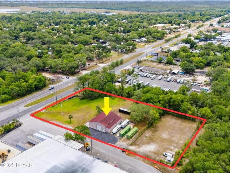Prime Commercial Property on Busy US1 Highway - Ormond Beach - Great Location! Situated along the bustling US1 Highway in Ormond Beach, this versatile industrial property offers excellent visibility and high traffic exposure. The property features a large, barn-style building equipped with two overhead doors, ideal for manufacturing, storage, or light industrial use. Complementing the main structure is a spacious office with private bathrooms, providing a comfortable workspace or administrative area. The property also boasts a fully fenced parking area, ensuring secure and convenient access for employees and company vehicles. With plenty of wide-open space for additional parking, expansion, or customization, this property presents a fantastic opportunity for businesses seeking a prominent location with flexible development options. Don't miss your chance to own this strategically situated commercial property in Ormond Beach! Owner has engineered plans for a 20,000sq foot building