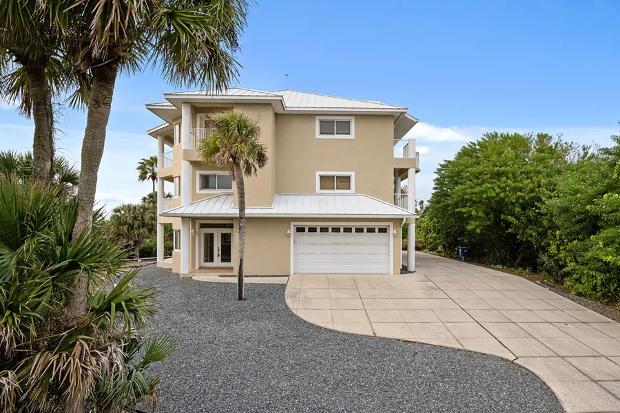 Stunning three-story direct riverfront Intracoastal home with 100 feet of river frontage. Located on a private cul-de-sac, this amazing property offers incredible sunset views over the Indian River and glimpses of the beachfront sunrise from the opposite side of the home. The car enthusiast will love the 6 + car garage with additional outdoor RV parking, while the chef in the family will enjoy the large open kitchen featuring top-of-the-line stainless steel appliances, a center island, custom cabinetry, and striking granite countertops. Additional features include a 3rd-floor master suite with a spa bath and views of the Intracoastal, 4 additional bedrooms, soaring vaulted ceilings with wood beams, a huge laundry room on the first floor, an elevator, and oversized balconies on both the front and back of the home. Located just two blocks from the beach, you're just a short distance from a morning stroll along the coast or an afternoon basking in the sunshine at the beach. For the fishing enthusiast, there is a private boat dock on the Intracoastal Waterway with easy access to the ocean. Don't miss your opportunity to own this impeccably maintained one-of-a-kind residence.