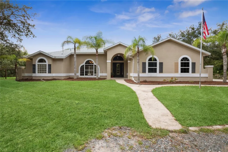 Welcome home to this beautiful 4 bedroom, 2 bath DeBary pool home on OVER AN ACRE with NO HOA. If you like privacy -- this is the home for you with a fully fenced yard. Features and recent updates include FULLY RENOVATED KITCHEN and PANTRY with all stainless steel appliances, TILE flooring throughout common living areas, RV / BOAT Garage 26 x 38 x 14 (Nov 2020), new well drilled (Feb 2021), new roof (approx. Jan 2021), solar panels, water softener, split floorplan, fireplace and more! DeBary is a short drive to New Smyrna and Daytona beaches, the St. Johns River, shopping, dining & more! Property may be under audio and visual surveillance.