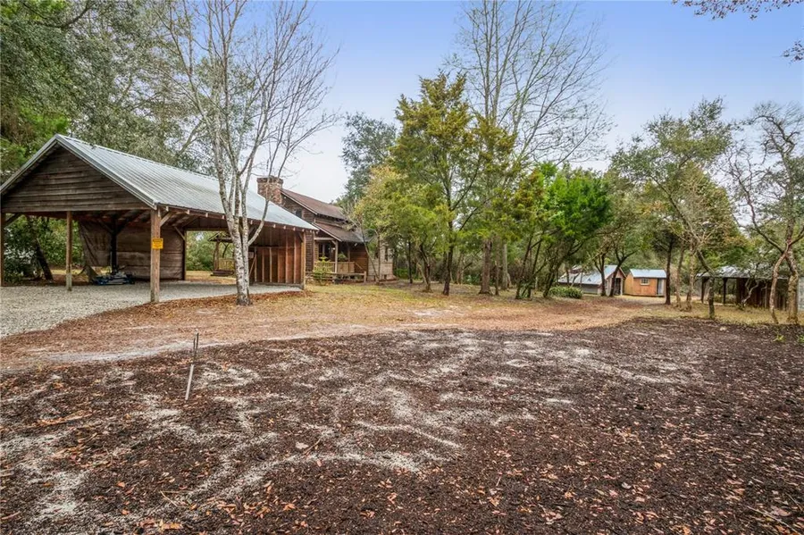 Charming unique 5 bedroom/2 bath sturdy rustic home on 5 acres. This two story home has many custom features throughout. Additional building for playroom/workshop has plenty of room for a man cave and/or a she cave. There is even an office with a separate entrance. Full front and back porch just waiting for your rocking chairs! This custom home has a full basement with 4 rooms and has a 2 story workshop/bonus building perfect for a home business or storage. There are 2 additional sheds and a 2 car carport. Just minutes to the St John's River, Chain of Lakes and Ocala National Forest. Convenient to downtown Deland with plenty of restaurants, shopping, medical facilities and close to I-4.