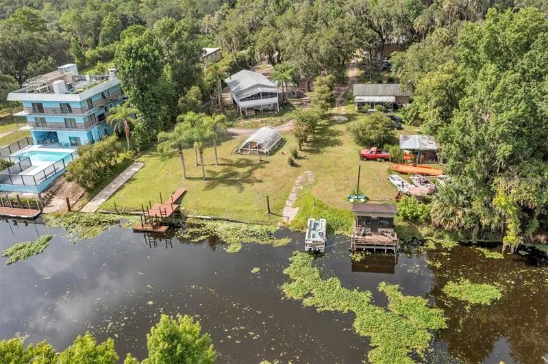 THIS IS ONE OF VERY FEW RIVER FRONT PROPERTIES THAT DID NOT FLOOD DURING THE STORMS. HIGH AND DRY!! Dreaming about that waterfront life? Look no further...welcome to Saint Johns River Acres community! This AMAZING waterfront home is beautifully situated on a DEEP WATER CANAL barely 100 yards from the opening to the St. Johns River. Bring any sized boat and pull right up to the dock giving you the most amazing piece of river front property you will find with so much versatility, features, and best of all....tranquility. This 1.5 Acre waterfront lot features 100 feet of direct canal frontage, full boat dock with a floating portion of the dock, your own PRIVATE CONCRETE BOAT RAMP, a greenhouse, and even the most amazing custom built treehouse complete with power and A/C!! This is absolutely one of the most unique properties you will find with so much to offer. The main house sits quietly near the rear of the property surrounded by soaring mature oak trees and giving you the most majestic tree-lined canopy above. The house has just been fitted with BRAND NEW ROOF, BRAND NEW HVAC SYSTEM, AND BRAND NEW WELL AND WELL PUMP. As you walk up the stairs to the front door, you'll find all living space on the 2nd floor, including a large living room, kitchen, 3 generously sized bedrooms, and a full bathroom. The living room and kitchen look out into the rear of the home giving you the most spectacular views of the water and bringing in tons of natural light. Enjoy the views, the tranquility, and the gorgeous Florida weather while sitting on the large screened in patio overlooking the backyard and the canal. On the bottom floor you'll find an enormous enclosed garage space with workshop and tons of room and options for expanding. This space could easily be converted to more living space allowing for this home to nearly double in size. Situated 22 feet in the air and right at the center of the property you will find a fully livable and enclosed CUSTOM BUILT TREEHOUSE with power, A/C, and picturesque views of this beautiful property. The home is located in a private river front community, nestled back beyond conservation, and although it offers privacy and rural type seclusion, it is still only 10 minutes from major shopping, restaurants, and nearby grocery stores. River life is the best life, and you will love being just minutes down the river from Blue Springs National Park, Swamp House River Front Grill, Lake George, Silver Glenn, and many other amazing St Johns River spots. Bring the boat, bring all the motorized toys, bring the RV, you can have it all....right here on Detroit Terrace.