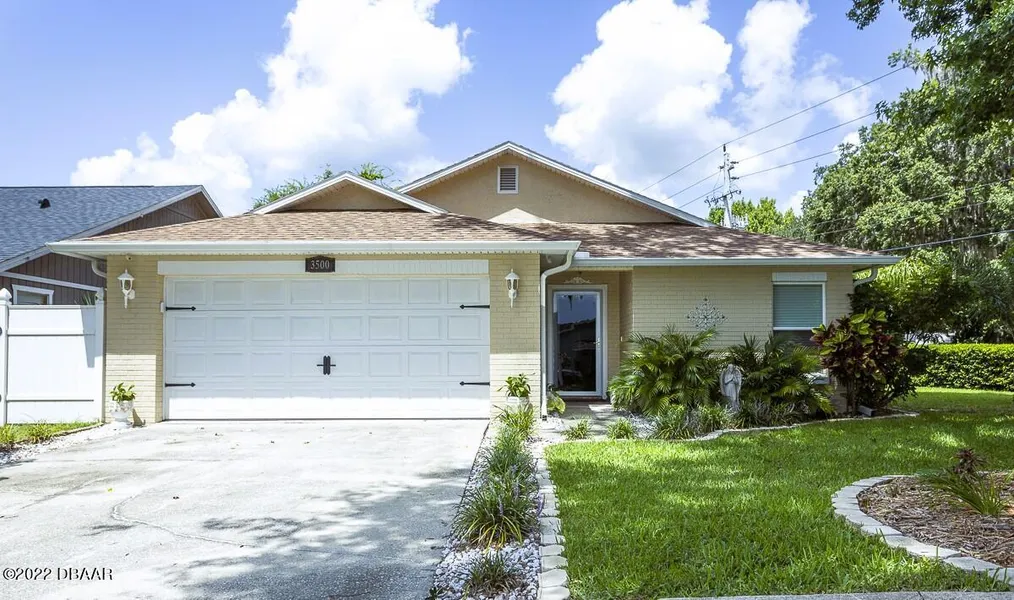 Welcome Home to Port Orange 🍊 Come & See this charming well-maintained home in a VERY Desirable Neighborhood centrally located plus great schools! Bright & open split floor plan features a large Great living room with soaring ceilings, skylights, creating an inviting place with two bedroom plus 1 bonus room that could be third bedroom or office-den. Lovingly prepared for new owners with All New: Roof ,Windows, HVAC, Security System, Fixtures, Irrigation System, Landscaping, Garage Door Opener, Stainless Steel Appliances, freshly painted interior & exterior. Master bedroom Un Suite will host a king size bed. Double back porch has trellis on corner lot. There is plenty of room to add a pool. NO HOA! So much opportunity for this home, dont miss your chance move-in ready home'