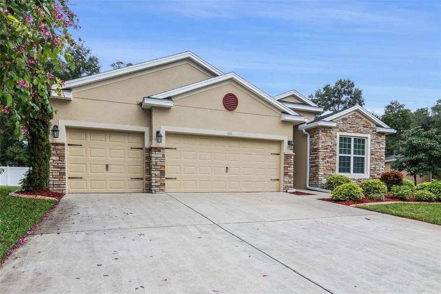 Welcome to this spacious 4-bedroom, 3-bathroom pool home with a 3-car garage. Spanning 2,345 square feet, this property offers a desirable open, 3-way split floor plan, providing privacy and functionality for you and your family. This remarkable home has been meticulously updated and upgraded with $42,000 worth of improvements. Every detail has been thoughtfully considered to enhance your living experience and provide modern convenience. The kitchen is a culinary enthusiast's dream, boasting a large island, ample counter space, stylish cabinetry, and walk-in pantry. Whether you're preparing a quick breakfast or hosting a dinner party, this well-appointed kitchen has everything you need. Overall, this tiled open concept floor plan with a large family room and dining room opening to the pool area provides a functional and aesthetically pleasing living space, perfect for those who enjoy a modern and connected lifestyle. Be sure to notice the newly installed LTV flooring throughout the bedrooms, adding a touch of elegance and durability. This upgrade enhances the overall aesthetic appeal of the home while ensuring easy maintenance. The primary bedroom is a private oasis, featuring a spacious layout, a walk-in closet, and an ensuite bathroom complete with dual vanities, a luxurious soaking tub, and a separate shower. The remaining bedrooms are equally comfortable and offer plenty of space for rest and relaxation. The outdoor space is perfect for entertaining and relaxation, with a heated pool and spa featuring remote/wireless heating. Enjoy year-round comfort and convenience as you control the temperature and settings with ease. The large fenced-in yard offers privacy and space for outdoor activities. For your entertainment needs, a projector and screen have been installed in the pool area, creating a fun and immersive experience for movie nights or watching your favorite sports events. This home is part of a natural gas neighborhood, offering the convenience and efficiency of gas appliances such as the range, hot water tank, dryer, and pool heater. The laundry room has been equipped with a brand-new Samsung washer and gas dryer, making laundry tasks a breeze. Located in a desirable neighborhood, this home offers easy access to Publix supermarket, numerus restaurants & shops. Only 10 minutes to Downtown DeLand and I-4. Also close to New Smyrna Beach & Blue Springs State Park! The combination of the spacious layout, extensive updates, and desirable features makes this property truly exceptional. Don't miss the opportunity to own a home that has received $42,000 worth of updates and upgrades, including a heated pool and spa, LTV flooring, and more. Schedule a showing today and experience the elevated lifestyle and convenience that await you in this remarkable pool home. This home may be under audio/video surveillance.