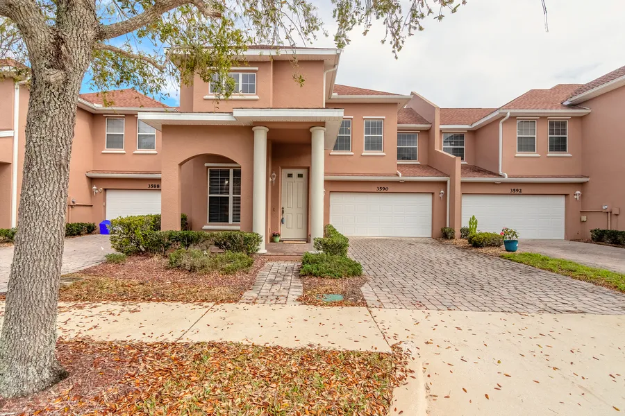 Experience maintenance-free living at its finest in this meticulously maintained and beautifully FURNISHED Venetian Bay townhome. With a picturesque lakefront view, this 3-bedroom, 2.5-bathroom gem features a bright and spacious interior, tile flooring, and a seamless flow between living spaces. There is a FIRST FLOOR OWNERS SUITE for ultimate convenience and comfort. Upstairs, two additional bedrooms and another bathroom provide ample space for family or guests, ensuring comfort and privacy for all. Entertain in style in the expansive living and dining room, enhanced by dramatic 2-story ceilings that exude sophistication. The well-appointed kitchen opens seamlessly to the family room, allowing you to whip up culinary delights while enjoying serene water views from the covered patio just outside. Storage will never be an issue with plenty of closet space throughout the home and extra storage in the 2-car garage. Outside, you'll appreciate the pavered driveway, front porch, and back porch where you can relax and take in the tranquility of your surroundings. The quiet neighborhood features sidewalks perfect for leisurely strolls. Venetian Bay offers so much more than just a home. With its town center boasting restaurants and shops, miles of walking paths, nature trails, parks and the Venetian Bay Spa, there's always something to explore. And if golf is your passion, you can join the country club with its 18-hole golf course through their membership programs (additional fees apply).