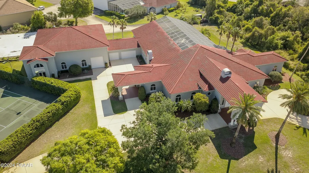 WELCOME TO PARADISE! This impressive, spectacular hangar estate is located in the exclusive ''Executive'' subdivision of the world-famous Spruce Creek Fly-In community. On 2.4+ acres, 6800+ square feet of living area, and a 3500+ square foot hangar that is 62' in width by 60' deep. The hangar door opening measures 60'x18', with an opposite RV access door. Boasting additional amenities like a private gym, sauna, pilot guest suite, tennis court,