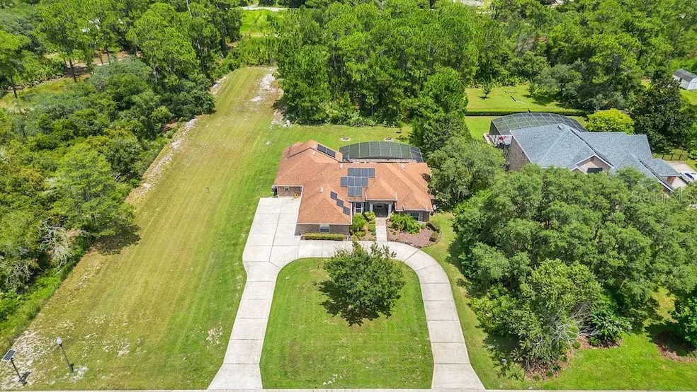 Under contract-accepting backup offers. Nestled on a sprawling 2.5 acre lot beautifully wooded in the desirable Winnemissett Oaks, this single-story pool home is ready to welcome new owners. An impeccably beautiful scenic drive to the property greets you with tall mature trees and glistening waters from Lake Winnemissett as you travel towards the front gate security with a call box and cameras. This custom built brick home sits on a cul-de-sac with a 3-car side entry garage featuring 4 bedrooms, 3 full baths, and a 1/2 bath for guests that leads you to the lanai. As you step inside from the front entrance, you are welcomed with high ceilings, gleaming hardwood floorings, and a formal living room. Adjacent from the formal living room is the formal dining room overlooking towards the front yard. As you walk around the corner, you will find the laundry room with plenty of upper cabinets and storage space, a utility sink, and the washer and dryer. Passed the laundry room is the kitchen equipped with all the appliances, under the sink reverse osmosis water system, granite countertops, endless upper and lower cabinets and counter space suitable for cooking and entertaining. Adjacent from the kitchen is the great room with windows and sliding glass doors flooding the room with plenty of natural light and providing 2 access points to the lanai. Towards the back end of the house, you will find another hallway that can be closed off with a pocket door featuring a secondary suite with its own private shower/tub bathroom and the third and fourth bedrooms adjoined by a Jack and Jill shower/tub full bathroom separated with pocket doors on each sides creating an ideal space for an in-law interior suite or private suites for guests. The split floor plan situates the main suite on the opposite of the home completely private from the rest of the home featuring a double door entrance, double facing walk-in closets and separate vanities. The stand-alone-shower is separate from the garden tub and a private room to the water closet. In this primary bedroom not only does it accommodate large furnitures, it is also elegantly designed with tray ceilings, and expands to a study area right off to the side with sliding glass doors that leads to the screened in lanai where you will find plenty of sitting space, the solar-powered swimming pool, readily available kitchen plumbing/electrical hook-up, and a-beautiful view of mature trees. Water source is on well and on septic. Whole house water filtration system and the whole house generator hook-up plug will also convey. It is a RARE opportunity to see a property available in this Winnemissett Oaks gated community where shopping, restaurants, doctor offices, and the highway are conveniently accessible whether you are off to the famous Daytona Beach or to Orlando's amusement parks!