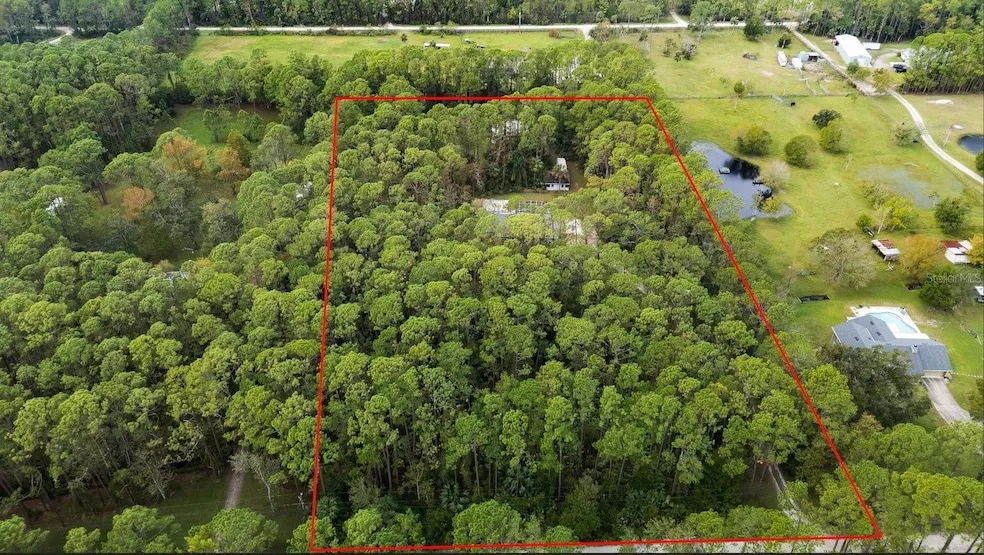 Under contract-accepting backup offers. Rare Private Country Estate on 5 Acres Surrounded by Mature Trees This exceptional 5-acre property offers unparalleled privacy and charm, making it a true countryside retreat. The primary residence boasts over 2,400 sq ft of living space with an oversized attached two-car garage, accessible via a spacious front driveway. The estate includes two versatile outbuildings: A detached garage with an adjacent workshop or gardening shed, ideal for hobbyists or additional storage. A 2000 sq ft enclosed pole barn (2010) with a poured concrete floor and high ceilings, perfect for larger equipment, toys, parties or projects. Additionally, the property features a chick coop and two natural carports all ideal for housing farm equipment, RVs, boats, or off-road vehicles. The 3-bedroom, 2-bathroom residence offers a private in-ground pool, installed in 2011, surrounded by a spacious screened lanai with a covered area perfect for outdoor dining and entertaining. The large front covered porch invites peaceful mornings overlooking the lush country landscape. The Home's Interior Features a large foyer that leads to a warm and inviting living room with hardwood floors. At the center is a wood-burning fireplace, adorned with a custom hearth of hand-picked river rock, adding character and charm. Adjacent to the living room is a separate dining room that offers flexible use as a home office or private study. The chef's kitchen is an entertainer's dream, featuring expansive counter space, custom cabinetry with built-in uplighting, and a breakfast bar for casual seating. The dining nook overlooks the pool and natural surroundings, bringing in tranquil outdoor views. The split floor plan ensures privacy, with the primary suite designed as a personal retreat. It features: Built-in and walk-in closets, A double vanity, Soaking tub, Tile shower and a Private water closet. Two spacious guest bedrooms share a well-appointed guest bath. This property offers the perfect blend of nature and functionality, ideal for those seeking a rural lifestyle with plenty of room for hobbies, outdoor activities, and entertaining. All this is conveniently located close to shopping and restaurants of Port Orange. Call for your private tour today! All information recorded in the MLS is intended to be accurate but cannot be guaranteed.