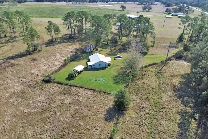 Set back on 9.40 ACRES along US HWY 17 in DeLeon Springs, this charming 1600 sq. ft. cottage style home offers the perfect blend of comfort and country living. Built in 2004, the 2 bedroom, 2 bath home is zoned A-1, providing endless opportunities to create your ideal homestead. The Kitchen has granite countertops, and stainless steel appliances. Just off the kitchen is a spacious laundry room that exits to the backyard patio area. Enjoy the serenity of open land, cast a line in your private pond, raise chickens, or saddle up your horses. An 18 x 14 Pole Barn provides the perfect spot for summer picnics and barbecues. With 2 wells and a 14x 24 steel outbuild, this property is ready to accommodate your vision of rural living. Don't miss this incredible opportunity to own your own piece of paradise!