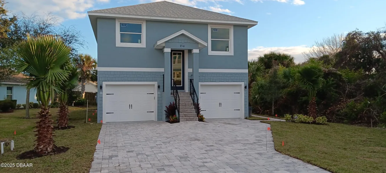 THE MOST UNIQUE NEW HOME ON THE ORMOND BEACHSIDE. FOR THE BOY/GIRL WITH THE TOYS! BRAND NEW, 7OO STEPS TO THE BEACH. DIRECT ACCESS, NO CUTTING THRU SOMEONE'S YARD. NO HOA. UNIQUE 2 STORY FLOORPLAN WITH ALMOST 1100 SQ. FT. MAN CAVE ! ROOM FOR 2-3 CARS, BIKE, BOAT. VERY AMPLE STORAGE. EPOXIED GARAGE FLOORING. ALSO, LOWER LEVEL HAS BEDROOM WITH BATH AND PRIVATE ENTRANCE. PAVERED DRIVEWAY AND SIDEWALK TO PRIVATE REAR ENTRANCE. PERFECT FOR IN-LAWS,ETC. UPPER LEVEL HAS 2 BEDROOMS, 2 BATHS. VERY OPEN ALSO FEATURING AN ATTACHED OFFICE/FLEX AREA OFF KITCHEN. WORK FROM HOME WITH UPGRADED QUARTZ IN THIS AREA AND BUILT IN WINE COOLER . PRIVATE BALCONY OFF GREAT ROOM WITH SUMMER KITCHEN. QUARTZ TOPS, ALL APPLIANCES INCLUDING FRIG., WINE COOLER, WASHER-DRYER, DOWN DRAFT OVEN. CLOSETS IN MASTER UPGRADED