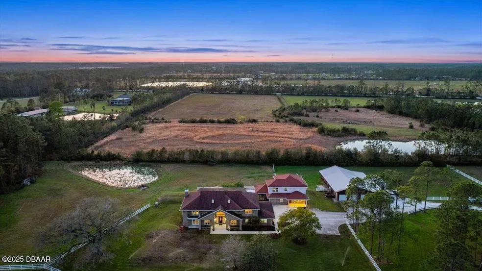 Welcome to your private oasis! Nestled on 10 sprawling acres, this stunning estate offers the perfect blend of elegance, comfort, and functionality. With a spacious main house and a fully equipped guest house, this property is designed to meet the needs of multi-generational living, hosting guests, or simply enjoying the luxury of extra space. Step inside the main residence, where you'll find 4 spacious bedrooms, a dedicated office, and 4 full bathrooms. Gorgeous wood and tile flooring flow throughout no carpet in sight while custom-built closets in every bedroom provide both style and organization. The open-concept design is perfect for gatherings, with a loft/game room offering the ideal space for movie nights, gaming, or relaxing with loved ones. The gourmet kitchen is a chef's dream, featuring an induction stovetop, convection microwave, and ample counter space for preparing meals. Cozy up by the fireplace... ... currently electric but easily convertible to wood-burning for those crisp evenings. Downstairs, crown molding adds a touch of elegance, and a convenient laundry chute connects the upstairs to the downstairs laundry room. With three AC units ensuring year-round comfort and an extra-deep 2-car attached garage, this home is designed with both practicality and luxury in mind. The guest house is a retreat of its own, offering 3 bedrooms, 2.5 bathrooms, and all the modern comforts your guests could need. A full-house generator powered by a 500-gallon propane tank ensures peace of mind during any weather. Outside, the property is a true haven for nature lovers, with three fenced pastures perfect for horses or livestock and a unique pump system that channels rainwater to the pond. Enjoy sunny Florida days by the solar-heated pool, surrounded by lush landscaping and ample space for outdoor entertaining. The home's exterior has been meticulously maintained, featuring newer Hardie board siding and soffits for long-lasting durability and curb appeal. Don't miss this rare opportunity to own a slice of paradise with endless possibilities. Whether you're looking to create a family homestead, entertain guests, or simply enjoy the peace and privacy of country living, this estate is ready to welcome you home. Schedule your private tour today and experience the lifestyle you've been dreaming of! Square footage received from tax rolls. All information recorded in the MLS intended to be accurate but cannot be guaranteed.