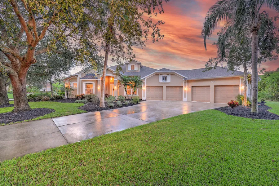 This custom-built pool home, located in the Halifax Plantation community of Ormond Beach, offers a perfect balance of style, comfort, and functionality. Completed in 2004 by Discovery Homes, the property sits on a large corner lot, surrounded by mature oak trees that enhance its curb appeal and provide a serene atmosphere. Car enthusiasts will appreciate the oversized four-car garage, which spans over 1,200 square feet, providing ample space for vehicles, golf carts, and motorcycles, as well as a 32-foot stand-up attic for extra storage. Inside, you'll find a well-designed floor plan that flows effortlessly from room to room. The entry leads to a spacious living area with a high, coffered ceiling and a cozy fireplace—perfect for both relaxing evenings and entertaining. The living room features a unique "Mur De Verre" (glass wall) that separates it from the breakfast nook without blocking the natural light and open feel of the space. The dining room flows into a modern kitchen, complete with 2017 LG appliances, granite countertops, a gas range, and an island. The family room, also featuring a coffered ceiling, offers disappearing sliders that open to a screened lanai, where you'll find a sparkling in-ground pool and spa. This home features two primary suites, ideal for guests or multi-generational living. The main suite offers a tray ceiling, two walk-in closets, and direct access to the lanai, as well as a spacious bath with a jetted tub and double granite vanities. Two additional guest suites are located on the opposite side of the home, ensuring privacy and comfort. The expansive screened-in lanai is equipped with a summer kitchen, making it the perfect place for outdoor dining and entertaining. The oversized backyard provides a tranquil natural setting where you can watch birds and deer roam freely, creating a peaceful retreat right at home. A utility room off the garage and kitchen includes a washer and dryer, along with ample counter space and cabinetry for added convenience. Recent updates include a new roof (2022), a new irrigation well (2020), and a 2016 air conditioning system. The home also has a Massey termite bond and energy-efficient tinted east-facing windows to help keep cooling costs low. Halifax Plantation offers a vibrant, active lifestyle with easy access to a full-service shopping center, including a Publix supermarket, restaurants, and other amenities. The community features a 25,000 sq. ft. clubhouse, a challenging golf course designed by Bill Amick, a fitness center, and tennis courts. For those who love the beach, the sandy shores are just minutes away, and nearby Tomoka State Park offers scenic trails for hiking, fishing, boating, and camping. This home provides a rare combination of luxury, privacy, and convenience, making it the ideal place to call home.