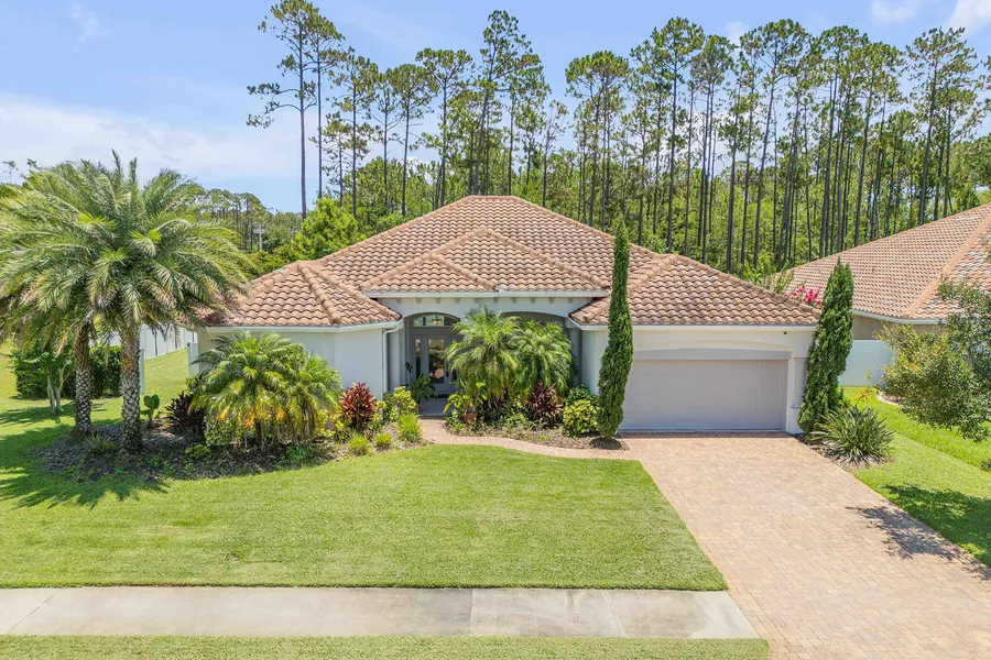 Enter into comfort and style in this former builder's model, lovingly maintained and ideally positioned on a premium corner lot. Backing onto a tranquil preserve, this property offers a peaceful backdrop, and a thoughtful floor plan designed for effortless living and entertaining. The bright, open interior features soaring volume ceilings, including elegant coffered details, and durable tile flooring throughout the main living spaces, with cozy carpeting in the bedrooms. A true split-bedroom layout ensures privacy, while the versatile fourth bedroom offers space for a home office or guest suite. The heart of the home is a chef-inspired kitchen equipped with granite countertops, quality cabinetry, stainless steel appliances and a generous island—ideal for gathering with friends and family. The kitchen seamlessly flows into the great room and formal dining area, both of which open onto the expansive screened lanai through oversized multi-slide glass doors that bring the outdoors in. Retreat to the luxurious primary suite, complete with two walk-in closets and private lanai access. The en-suite bath offers a spa-like experience with a walk-through tiled shower featuring dual heads and controls, a soaking garden tub and dual vanities. Additional highlights include lush landscaping, a fully fenced backyard, a tiled roof, and custom paver walkways and driveway, including a charming fire pit area for evening gatherings. Smart home features include a built-in intercom with surround sound, an integrated iPad system, irrigation and a security system. In the sought-after Hunters Ridge community, Briargate offers an array of amenities such as two community pools, tennis courts, pickleball court, basketball hoop, fishing pier, scenic trails, parks, playgrounds, a baseball field and a clubhouse. Conveniently close to shopping, dining and local services, this home is the complete package. Your next chapter begins here. Schedule your private showing today.