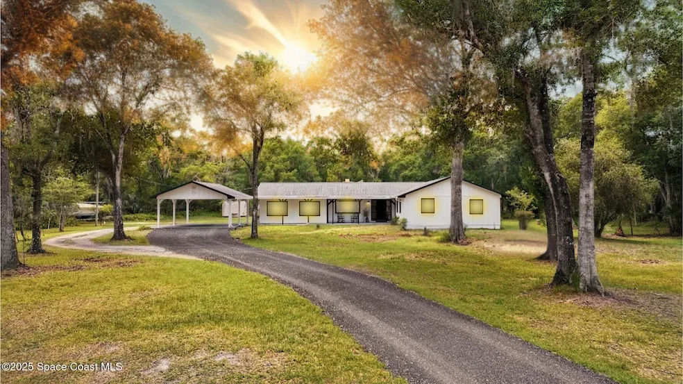 Gorgeous 4-bedroom, 2-bath home fully renovated, featuring a separate 2-bedroom, 1-bath in-law suite, all set on 5 acres in the highly desirable Tomoka Farms area. This move-in ready residence showcases high-end finishes like quartz countertops, Carrera marble backsplash, and slate-tiled showers. An expansive sunroom with walls of windows fills the space with natural light. The private in-law suite is perfect for guests, rental potential, or multigenerational living. The spacious grounds offer endless possibilities entertain outdoors, add a pool, or bring your RV, boat, or animals. Enjoy modern country living just minutes from Daytona, the beach, and I-95.