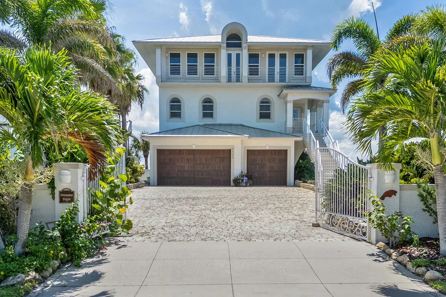 Manatee Point – Where Nature Paints the Hours – is a rare coastal estate that seamlessly blends refined luxury with the raw beauty of Florida's most captivating landscapes. This 4-bedroom, 3.5-bath residence encompasses 5,531 square feet of living space, artfully designed to capture sweeping views of both the Indian River & the Atlantic Ocean. Nestled in the tranquil Bethune Beach enclave of New Smyrna Beach, the property offers an unparalleled lifestyle at the meeting point of elegance, comfort, & unspoiled nature. A private covered dock grants direct access to boating, fishing, & endless waterway exploration. Set along the Indian River, this home is more than a residence—it is a sanctuary. Each day begins with the sight of golden sunrises glistening across the water & ends with dramatic, color-soaked sunsets mirrored in the tranquil river. Dolphins leap playfully while manatees drift silently in the quiet cove, just steps from your backyard. Elegant herons, pelicans, & egrets arrive daily, transforming your waterfront into a living canvas of natural wonder. To the east, the Atlantic Ocean is only a block away, ensuring the sea is always within reach. Every room is oriented to celebrate these vistas, from the owner's suite & formal dining room to the glass-enclosed office & expansive living spaces. Built with poured concrete for strength & permanence, the home was crafted with soaring ceilings, rich wood & marble floors, & an architectural floating staircase. A three-stop elevator ensures convenience, while walls of glass frame panoramic 180° views that blur the boundaries between indoors & out. At the heart of the home, a chef's kitchen awaits, complete with quartz countertops, a gas range, butler's pantry, & designer lighting. The primary suite serves as a private retreat, with dual walk-in closets, a coffee bar, & a spa-inspired bath featuring a Jacuzzi tub overlooking the river. Additional comforts include a second-floor laundry with granite counters, outfitted closets with custom storage, & a 969-square-foot three-car garage. On the first level, a private guest suite with its own living room & bath opens directly to the pool & dock, offering an ideal escape for family or visitors. The outdoor lifestyle here is second to none. A sparkling pool with waterfall Jacuzzi overlooks the river, while multiple balconies invite both sunrise coffee & sunset cocktails. Paddleboard or kayak from your backyard, stroll to world-class surf breaks, or fish the legendary waters of Mosquito Lagoon. Lush landscaping with mature palms enhances the sense of privacy & tropical charm. Modern upgrades include a whole-house water filtration system, impact-rated glass doors & windows (2018), nineteen new architectural windows (2025), two Lennox HVAC systems with transferable warranties (2024) & a durable metal roof (2014). These features ensure both luxury & peace of mind. Beyond your gates, New Smyrna Beach offers vibrant cultural & recreational opportunities. Stroll to the no-drive beach, kayak through Canaveral National Seashore, or watch rocket launches from nearby Kennedy Space Center. Just minutes away, Flagler Ave & Canal Street deliver boutique shopping, dining, & art. Championship golf, Daytona Speedway, & Orlando's theme parks & international airport are within easy reach. More than a home, Manatee Point is a private waterfront sanctuary—an inspiring retreat where natural beauty & refined living converge in one extraordinary address.