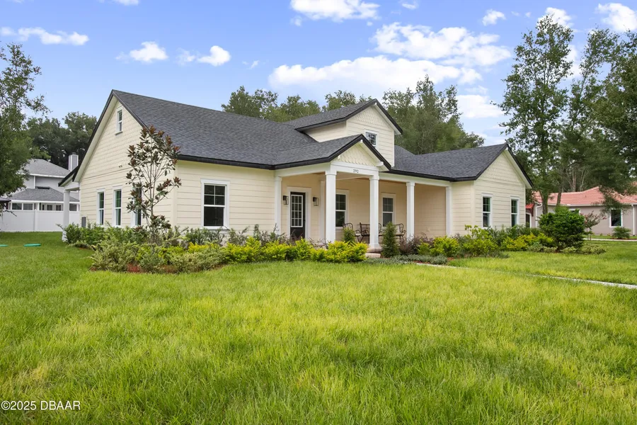 Welcome to this brand-new construction home located in the charming town of Lake Helen, known as the ''Gem of Florida.'' Situated on a .49-acre corner lot, this 4 bedroom, 4 bathroom residence blends modern luxury with timeless design. From the moment you arrive, the large tiled front porch with cedar-paneled ceiling sets the tone for the quality and craftsmanship found throughout. Inside, vaulted ceilings and upgraded Acoustic LVP flooring flow seamlessly through the open layout, while recessed lighting and modern fixtures highlight the elegant finishes. The chef's kitchen features stainless steel appliances, a pot filler above the cooktop, brushed gold cabinet accents, and an expansive island, all opening to the living area with sliding accordion glass doors that bring the outdoors in. The primary suite is a true retreat, complete with tray ceilings, a spacious 10x11 walk-in closet, an...