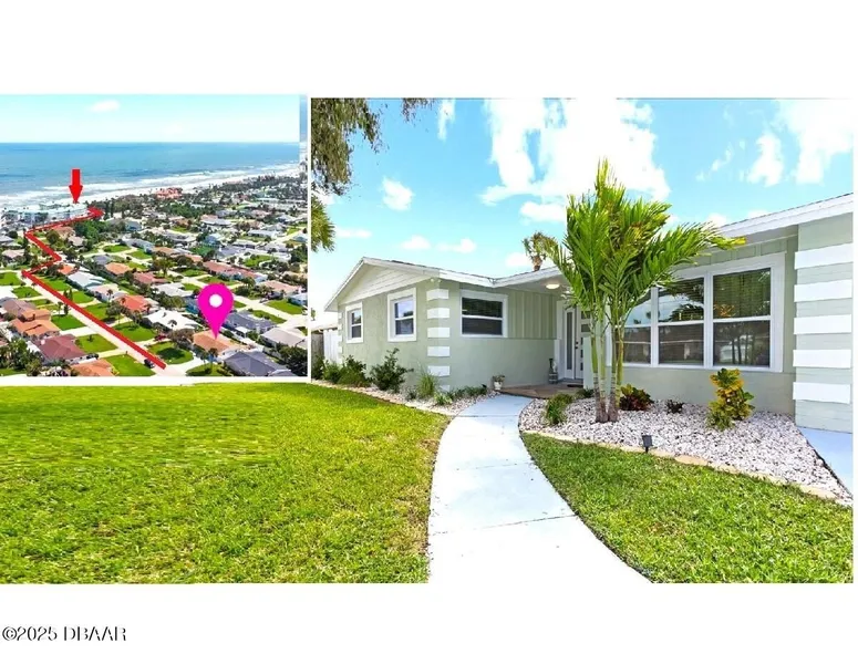 Stunning and masterfully transformed, this bright and airy beachside home sits just steps from the ocean. Featuring NEW impact windows, an updated open-concept layout, a designer kitchen with granite island, elegant lighting throughout, a spa-style primary suite with walk-in closet, and a sun-filled enclosed sunroom, this home delivers the refined coastal lifestyle buyers are seeking. Solid concrete block construction, no flood zone, never flooded, no HOA, and no septic provide exceptional peace of mind. HVAC 2021. The thoughtfully redesigned floor plan enhances flow, maximizes natural light, and creates a cohesive connection between the kitchen, dining, and living spaces. Fresh interior and exterior paint, new flooring, and upgraded modern light fixtures add to the home's bright, turn-key aesthetic. A flexible 4th room is ideal for a home office-or can serve as indoor laundry, easily re...