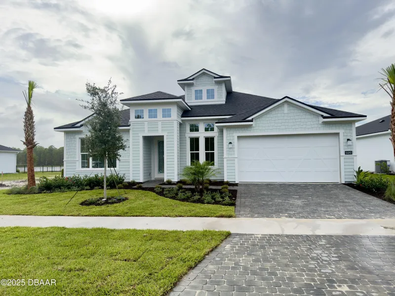 Currently under construction, the home is estimated to be completed by November 2025. Discover the Costa Mesa, a stunning custom home by ICI Homes featuring 4 bedrooms, 3 bathrooms, and a versatile flex space. This 2,665 sq ft residence offers a picturesque water view from its 10' sliding glass doors and 34' x 13' rear lanai. Inside this home boasts 12' ceilings and luxury 12x24 tile flooring throughout, a gourmet kitchen with Bianco Glace quartz countertops, 42'' White Steam cabinets and high-end GE Signature appliances including a wall oven, wall mounted microwave and glass cooktop with stainless steel range hood. Owners suite has a beautiful water view, double vanity sinks, a large walk-in shower and impressive walk-in closet. Additional highlights include advanced Smart Home technology, energy-saving features, and a 3-car garage. Situated in a secure gated community with a pool, cabana, and tot lot, this home is zoned for the highly coveted Spruce Creek schools and is conveniently located near Port Orange Pavilion, shopping, dining, and the beautiful beaches. For added peace of mind, the home comes with a home buyer warranty program. Don't miss the chance to make this exceptional property your own.