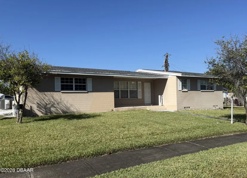 Great Location in the heart of Ormond Beach. This well-maintained block 3-bedroom, 2-bath home sets on a no flood corner lot in Fiesta Heights. It features a large open concept with beautiful 1-1/2'' oak hardwood flooring throughout. A large living room is connected to a beautiful kitchen and center island allowing easy access. The kitchen has modern cabinetry with hard surface counter tops allowing a large area for cooking and preparation. There is a family room with a separate entrance joined by a dining room that exits to a screened patio for outdoor enjoyment. The bedrooms provide large closets along with a walk-in closet in the master. The home provided extra closet spaces with one in the living room and two in the hallway area. Both baths are updated and have easy access. The large two-car garage also has room for a workshop area, storage and section for the washer and dryer. The l...