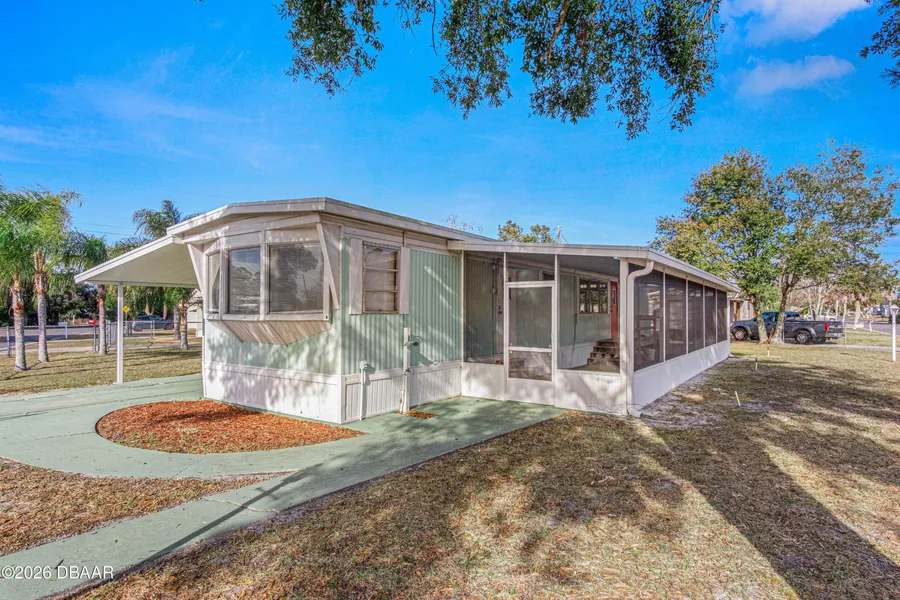 Own your land with this well-maintained 1964 mobile home, perfectly situated on a .17-acre lot with no HOA fees. While the interior features classic paneled walls that maintain a vintage charm, don't be fooled-the home has been well cared for and is ready for its next owner. The functional layout includes 2 bedrooms and 1 bath. Outside, you'll find a long carport providing plenty of covered parking, leading to a utility room equipped with laundry hookups. The property also features a fully fenced yard, offering plenty of space for pets or gardening on your own private lot. This is a rare opportunity for affordable, move-in-ready living with the freedom of land ownership. Cash only. All information taken from the tax record, and while deemed reliable, cannot be guaranteed.