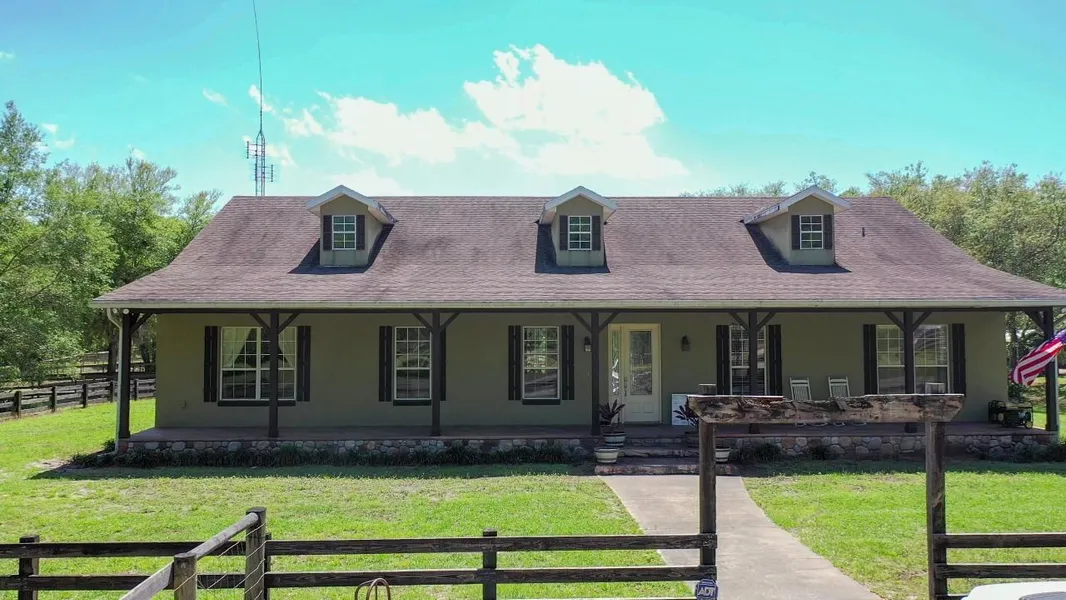 Pristine and turnkey ready 13 Acre Equestrian Estate. A little over an hour to WEC. Training/Boarding or private wintering facility for your stay or Homestead. Suitable for any type of equine discipline. Includes 5/3 Home, 2 Barns totaling 14 stalls, Covered Arena, Equipment Barn, Storage barn, Dog Pen with underground electric Invisible dog fence available. The home is located through a gated entrance winding through two large paddocks lined with oak trees. 2,960 living sq. ft. with a large open concept, split floor plan, beautiful island kitchen with stainless steel appliances, gas range, oven, and walk-in pantry. 5 Bed, 2.5 bath. Carpeted master with double walk-in closets, large, tiled bath with separate shower and Whirlpool tub. Zone heating and air throughout. Back door opens onto 12x48 Lanai overlooking 140x40, 10 stall Concrete Barn and Covered Arena both built in 2016. The Center aisle, custom 10-12x12 stall barn shows great attention to detail with 2-13x12 Tacking stalls, Feed Room, Tack and Locker Room, Kitchen area, Laundry with shower, separate Hay storage with combustion alarm and sprinkler, also Shaving storage. Fans, Fly misters and water to each stall. Barn can be completely closed by custom Roll-up doors on 3 sides, barn doors on the front. 2nd Barn, 83x45, has tack and feed room with 4 stalls, concrete breezeway, Huge equipment bays on two sides with work bench. Property boasts several paddocks with no climb fence, electric fencing on top and water source, base for round pen, run-in shed and extra storage areas. The Covered Arena is approximately 198x80, Clay/ Sand, Lasered and Leveled with watering system and dressage mirrors on each end of the arena. Steel beams are set with 16 cu ft. anchors on all sides. Amazing property in a great location! Complete with purchase are large and small Kubota Tractors, Mower, Fertilizer Spreader, Club Kart, Manure Spreader and Harrow. Close to downtown DeLand, with Famous Daytona Beach only 15 minutes away.