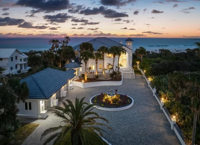 Under contract-accepting backup offers. Unparalleled Oceanfront Luxury - A Gated Estate Like No Other! Step into a world of unrivaled elegance and breathtaking beauty with this incredible oceanfront estate. Nestled in a premier location just steps from the iconic Ponce Inlet Lighthouse and the serene Disappearing Island, this magnificent property offers an extraordinary blend of luxury, sophistication, and coastal charm. As you enter through the private gates, a stunning paver courtyard welcomes you to a residence that exudes grandeur at every turn. Inside, superb design and stellar architecture set the stage for an unforgettable living experience. The home boasts over 7,500 sq. ft. of meticulously designed living space, featuring 5 spacious bedrooms, 5 beautifully updated baths, and 1 half bath. From the moment you step inside, exquisite details captivate the eye - from grand coffered ceilings and marble floors throughout the main living areas to new impact windows, custom railings, and impressive light fixtures. The extensive use of travertine enhances the estate's luxurious ambiance, placing it in a league of its own. Breathtaking Views & Exceptional Features such as panoramic ocean views greet you from nearly every room, allowing you to wake up to the sound of waves crashing and stunning sunrises. A staircase leads to a majestic turret, offering unparalleled 360-degree views as far as the eye can see. A full basement theater with a wet bar and full bath provides the perfect space for entertaining in style. The galley-style chef's kitchen is a dream, featuring a wet bar, massive center island, breakfast bar, and eat-in area overlooking the ocean. The travertine and marble fireplace serves as a statement piece in the grand living area, adding warmth and elegance. The second story is home to an opulent primary suite, complete with a private sitting area, spa-like master bath, and a sprawling travertine balcony where you can start your mornings with a cup of coffee and the soothing sight of the surf. Seamlessly blending indoor and outdoor living, this estate offers commanding ocean views through walls of glass, leading to expansive outdoor spaces designed for relaxation and entertainment. Enjoy the saltwater black-finished pool and patio areas, where smiling weather invites you to unwind and soak up the coastal breeze. With a private walkway through the dunes, the beach is quite literally your backyard-your slice of paradise awaits! Don't miss this once-in-a-lifetime opportunity to own a prestigious oceanfront estate that defines coastal luxury living! Schedule your private tour today!Square footage received from tax rolls. All information recorded in the MLS intended to be accurate but cannot be guaranteed.