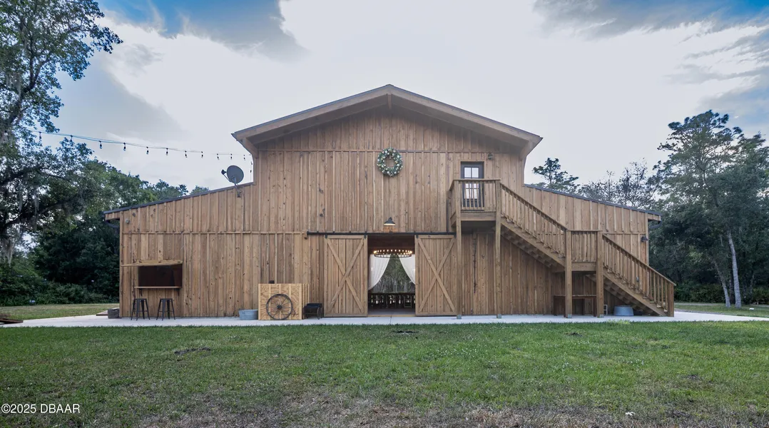 Where Country Serenity Meets Coastal Convenience Welcome to 963 Lake Ashby Road - a rare 10+/- acre estate adjoining 1092 Tallacoe Trail, offering over 16+/- acres of pristine countryside when combined. Together, these parcels present an extraordinary opportunity to create a private multi-home compound, equestrian estate, or family retreat just minutes from New Smyrna Beach. Here, the tranquility of rural living meets modern flexibility-where you can ride, garden, build, and breathe freely. Zoned A-2, this property gives you the freedom to design your ideal lifestyle: build your dream residence, keep horses or livestock, or simply enjoy the peaceful beauty of your own acreage while staying close to coastal amenities, shopping, and dining. ____ The Barn & Living Quarters At the heart of the property stands a striking multi-purpose barn, blending rustic charm with functional design. Built with wood siding, sliding barn doors, a durable metal roof, and full concrete floors, this impressive structure is both practical and picturesque. Inside, open-beam ceilings, exposed trusses, and string lighting create a warm, inviting atmosphereperfect for hosting gatherings, events, or family celebrations. A beautifully finished one-bedroom suite is thoughtfully integrated into the barn. It features an open-concept living area, full kitchen with modern cabinetry, dark countertops, and full-size appliances, plus a comfortable bath with a granite-look vanity and standard tub/shower combination. Natural wood finishes and durable flooring complete the space, offering a cozy, low-maintenance retreat for guests, caretakers, or temporary living while building your future home. ____ The Land The level, usable terrain is surrounded by mature oak and pine trees, offering privacy and a natural buffer on all sides. With more than 16+/- acres available, there is ample room to: " Add additional barns, workshops, or garages " Create paddocks, riding arenas, or gardens " Develop recreational features such as a pool, firepit, or walking trails Utilities are available nearby, and the open layout allows endless potential for expansion or customization. ____ The Location Nestled in the peaceful countryside of Volusia County, this estate provides a serene escape without sacrificing convenience. You're just minutes from the Deep Creek Preserve (equestrian-friendly), beaches, marinas, and historic downtown of New Smyrna Beach, as well as nearby Edgewater shopping, dining, and schools. It's the ideal blend of country privacy and coastal lifestylea place where you can enjoy wide-open skies and starry nights while being within easy reach of everything that makes this area so desirable. ____ The Opportunity Whether your vision is an equestrian estate, family compound, special event hosting or private homestead, this property delivers space, structure, and setting unlike anything else on the market. With over 16+/- combined acres, 963 Lake Ashby Road offers a rare chance to own a true piece of Florida countryside while staying connected to the best of coastal living.