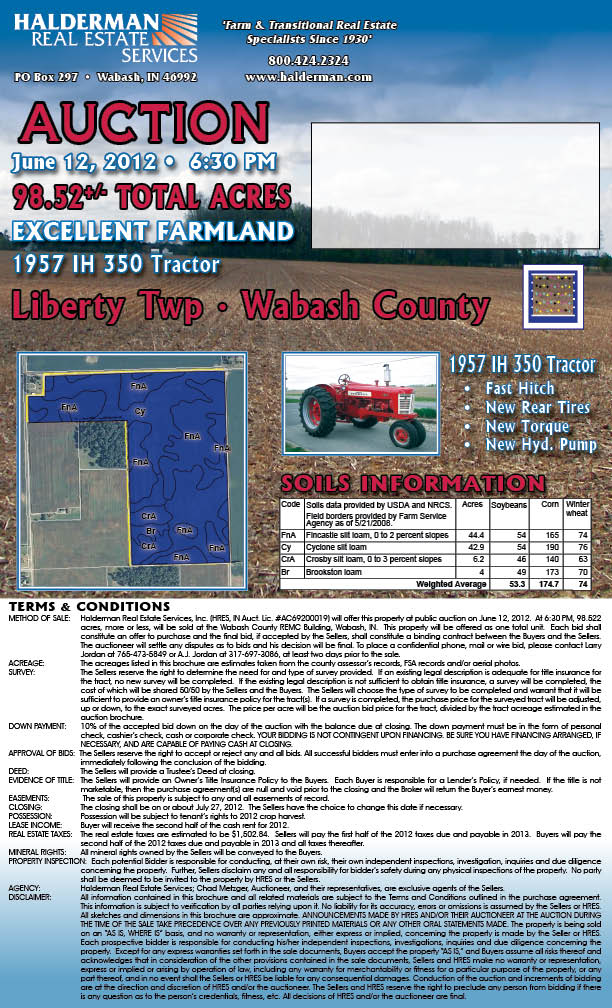 98.52 Total Acres in 1 Tract (97.5 Tillable Acres)