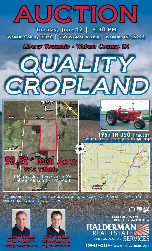 AUCTION Tuesday, June 12 at 6:30 PM to be held at the Wabash County REMC, 350 Wedcor Avenue, Wabash, IN 46992